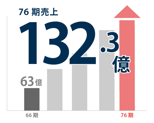 74期から76期までの伸び率です。非常に好調に推移しています。